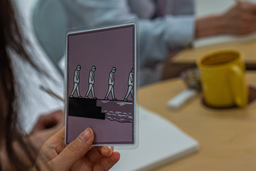 시간이 지날수록 누군가는 저울이 한쪽으로 더욱 기울도록 했고 누군가는 계속 균형을 맞추려고 했다. 처음엔 권리, 자유, 독립 쪽으로 무게가 쏠리는 듯했으나 그 반대에 이웃, 안정, 사랑이 위치하면서 균형이 생겼다. 나머지 구석에는 로또, 청약, 대출이 강력한 무게로 버티고 있었다. 층간소음, 담배냄새와 관련한 개인적인 경험담을 나누며 게임은 끝이 났다. 한 바탕 떠들고 나니 이것은 과연 길을 잃은 것일까 생각이 들었다.