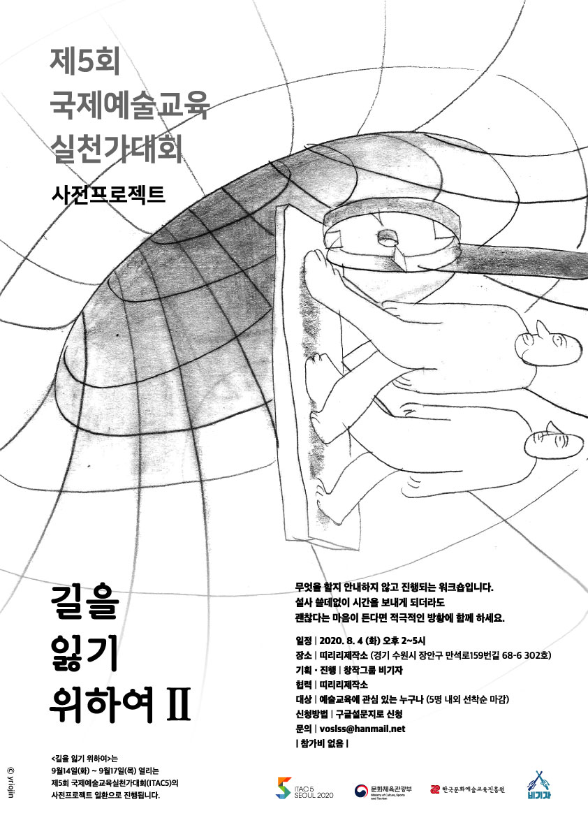 * “길을 잃기 위하여”는 9월14일(화) - 9월17일(목) 열리는 제5회 국제예술교육실천가대회(ITAC5)의 사전프로젝트 일환으로 진행됩니다.